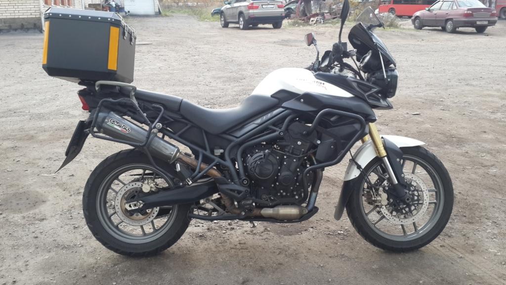 На мотоцикл дополнительно установлено: стекло MRA со спойлером, руль FATBAR, ручки с подогревом OXFORD, регулируемые рычаги, навигатор, зеркала, защита двигателя, защита радиатора, центральная подставка, багажные рамки GIVI, алюминиевый багажник, сделано усиление под багажник, алюминиевый центральный кофр 60 л., выхлоп GPR.