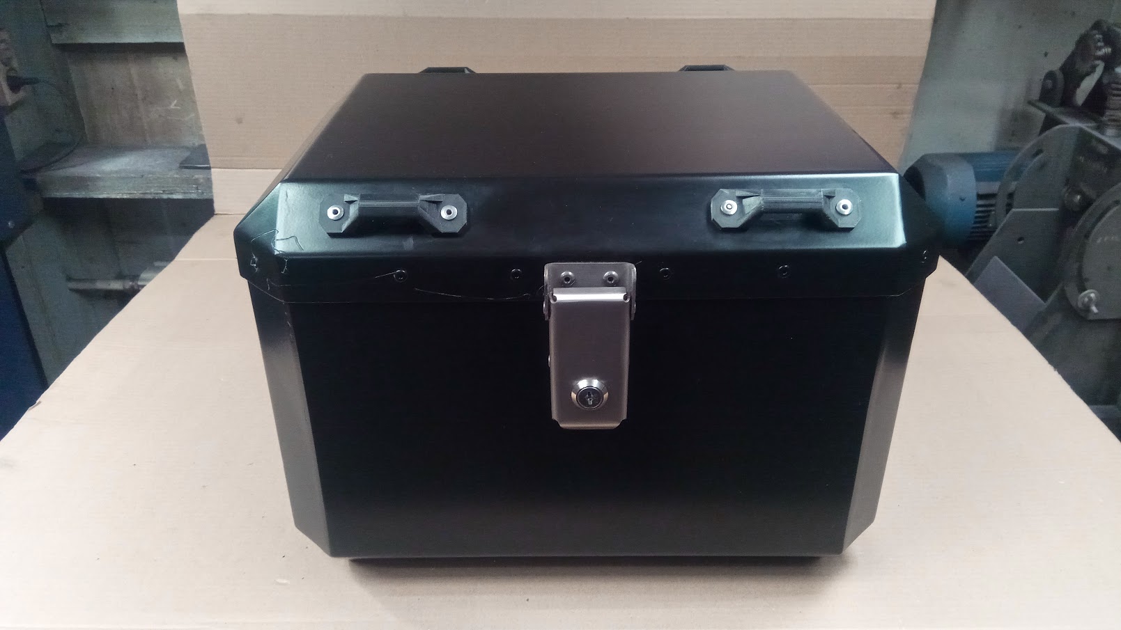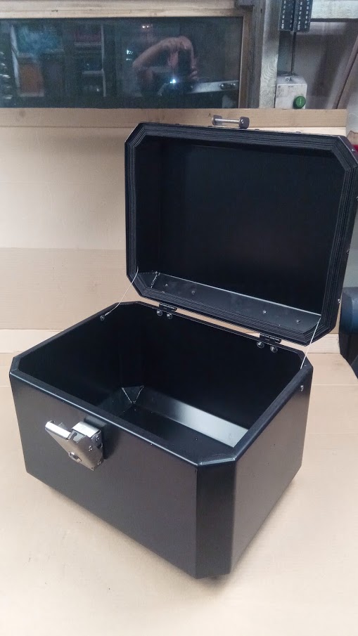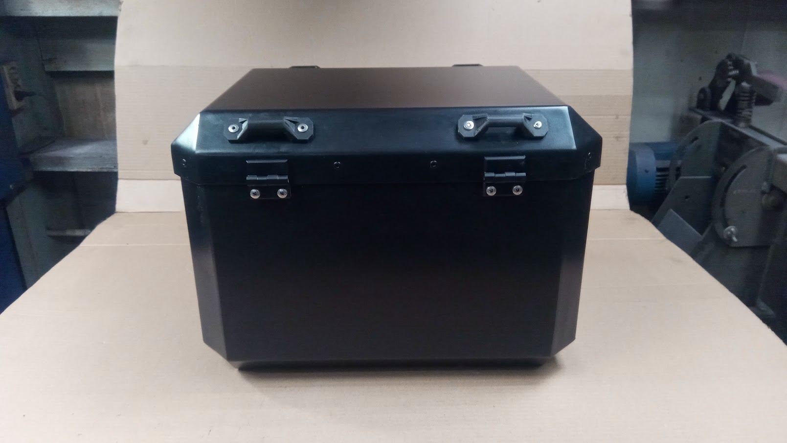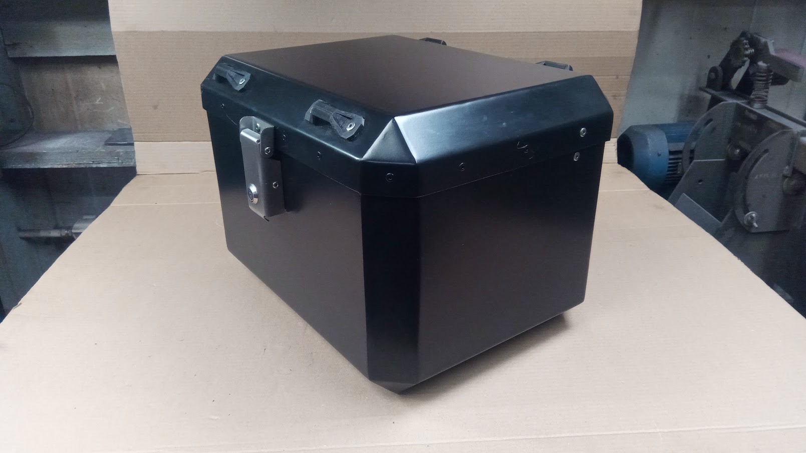Сделан центральный кофр для Triumph Explorer 1200. Размер 440-340. Высота 320. Примерный объем 46 литров. Сделан из листового алюминия 2мм. Дно усилино 4мм. Вес 5,2 кг. Вмещается один мотошлем. Цена 15т.