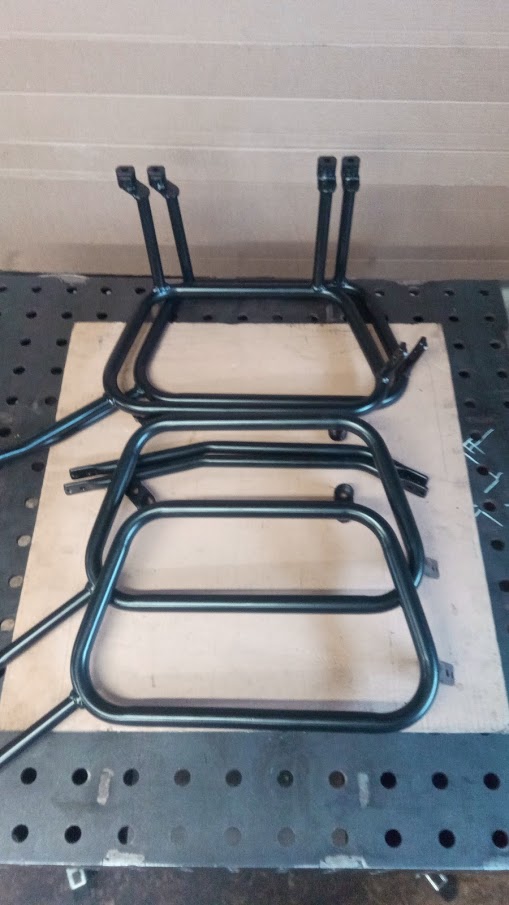 Прототипом этих рамок стали рамки от Мотеч. Еще в 14 году себе я сделал такие рамки под кофры Мотеч. Эта первая конструкция прошла 150т.км. Все в ней выдержало такой пробег. Несколько раз случались падения на малой скорости. И один упс на 40км/ч. Кофр отлетел. Рамкам ничего.