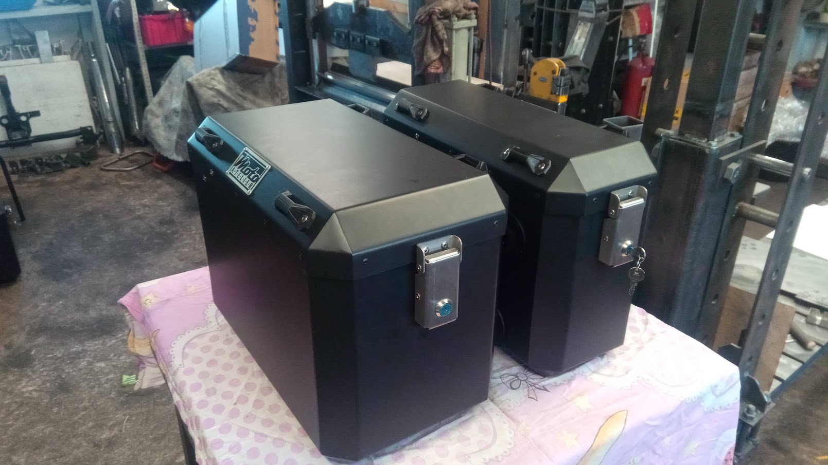 Сделан комплект кофров для Triumph Tiger 800XC и 800. Размеры левого 490-360-280. Правый 490-360-200. Разница обусловлена из-за наличия глушителя справа.