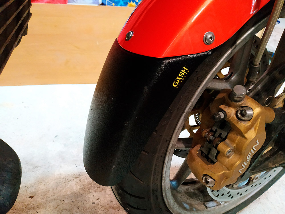 Ну и ещё я купил и поставил удлинитель на переднее крыло от Gash Plastic. Деталь не сильно впечатлила, но своё дело делает. В комплекте идут клёпки, но я прикрутил на болтики, которые были на удлинителе старой 800-ки.