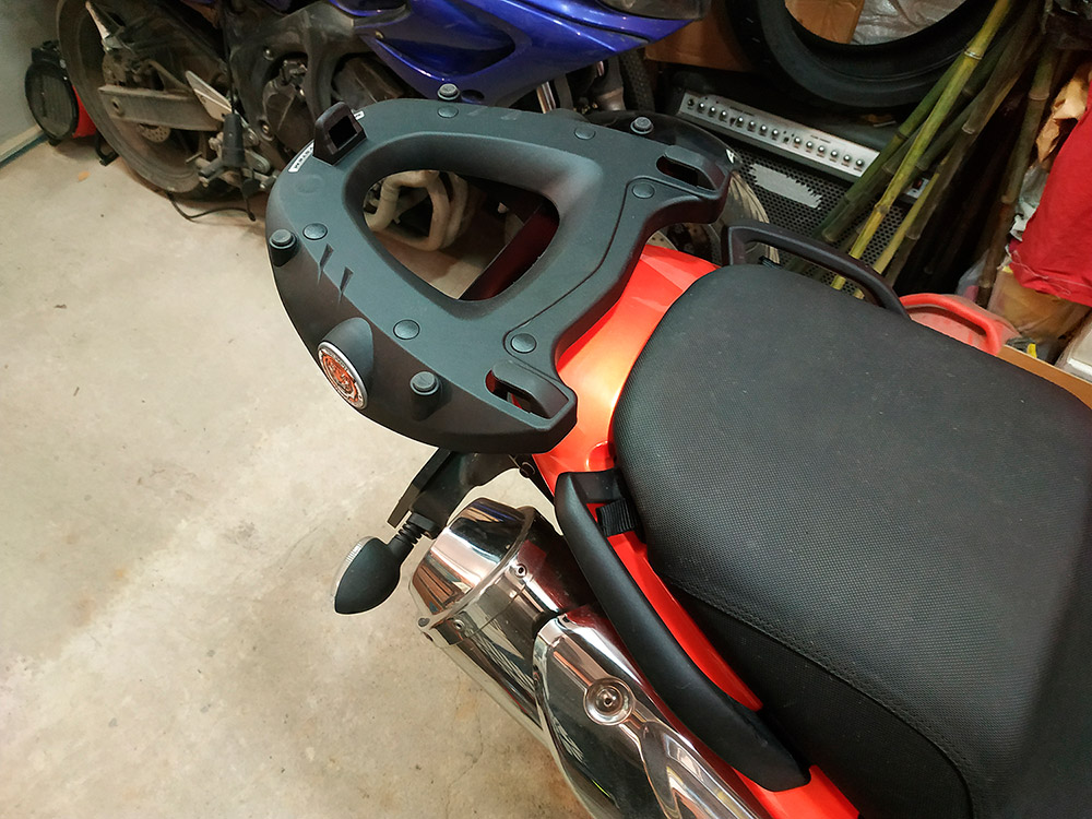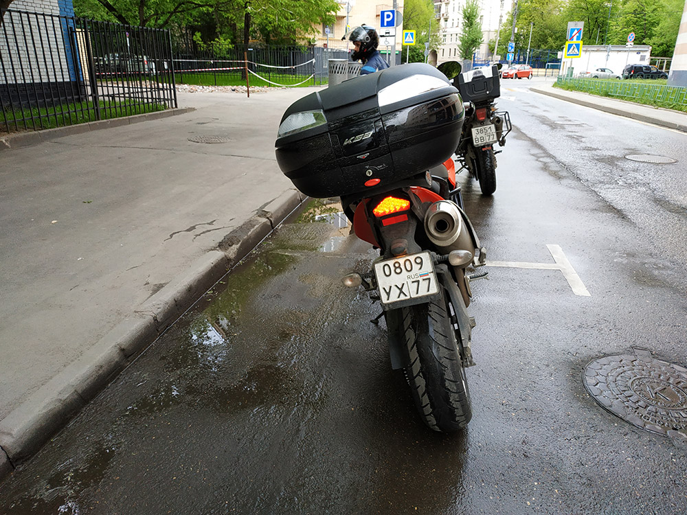 Ну и большой плюс - наличие в Драйвбайке и приемлимая цена, особенно со скидкой, которую мне сделал Лёша Кеноби. Всё, решено и спустя некоторое время кофр водрузился на Рыжего! Ну и я сразу прикупил накладку на кофр и отдельно спинку в Байкленде.