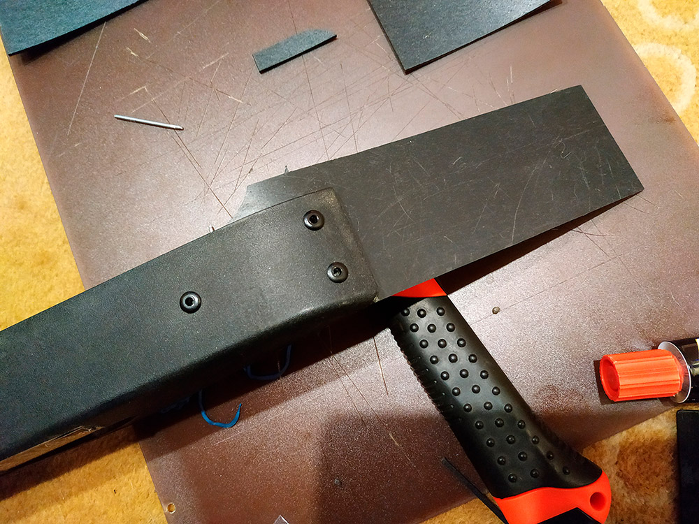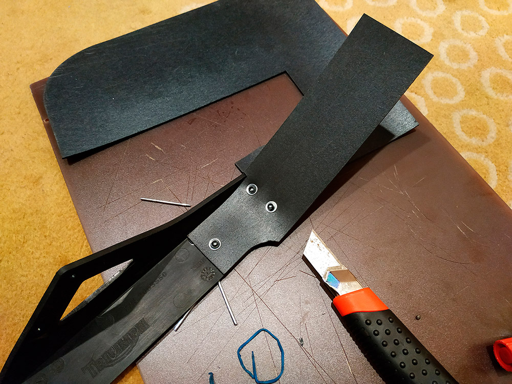 С давних пор у меня лежат брызговики Sparco из которых я порой что-то вырезаю полезное. Это резино-пластик, который легко режится и достаточно гибкий и прочный.