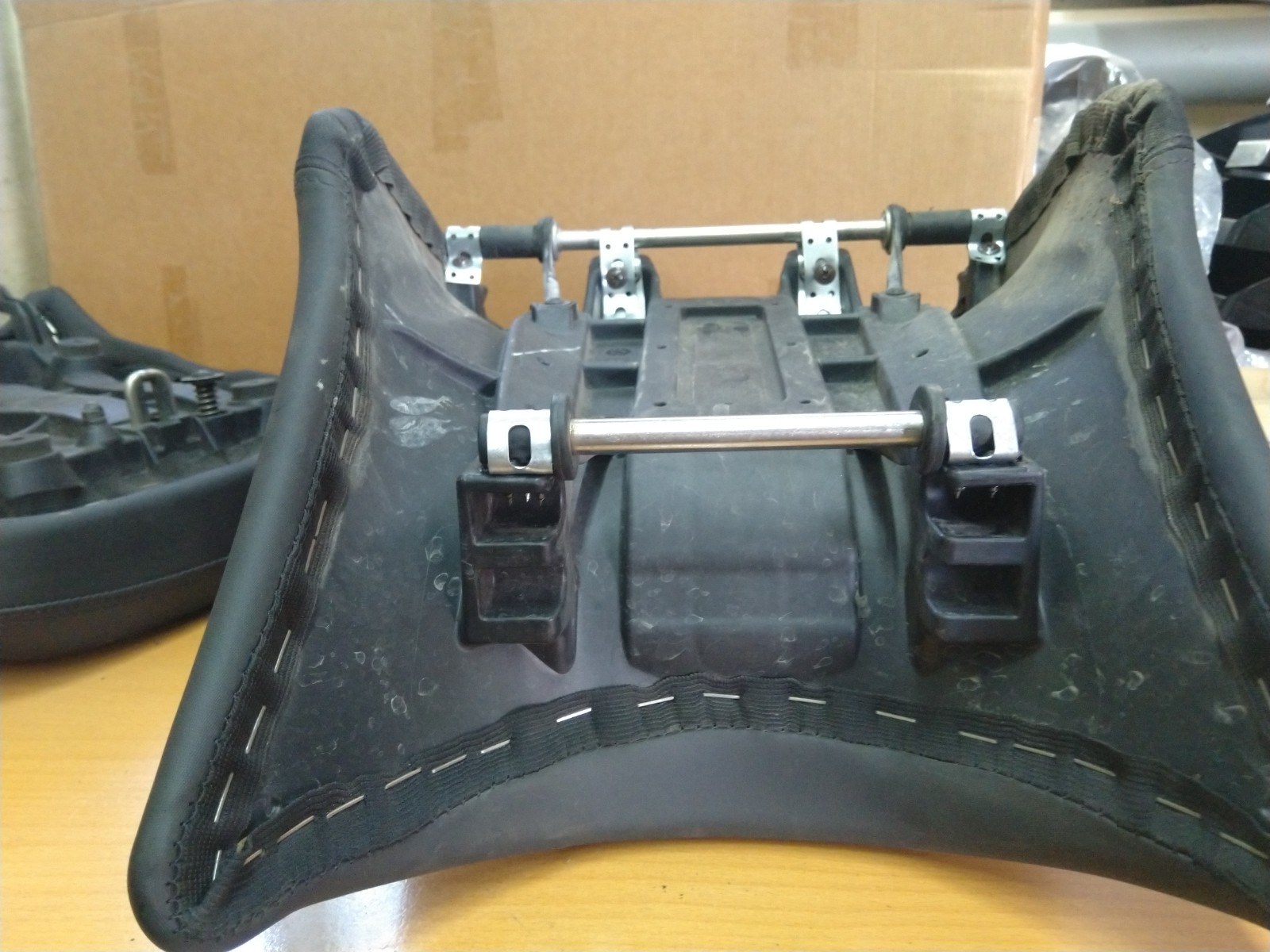 Было сделано следующее ради эксперимента: из металлической гибкой полосы были созданы новые крепления (третья ступенька), закреплены, и установлены. Просто прикручены на саморезы. Пластик седла вязкий, не хрупкий, если что, можно и снять.