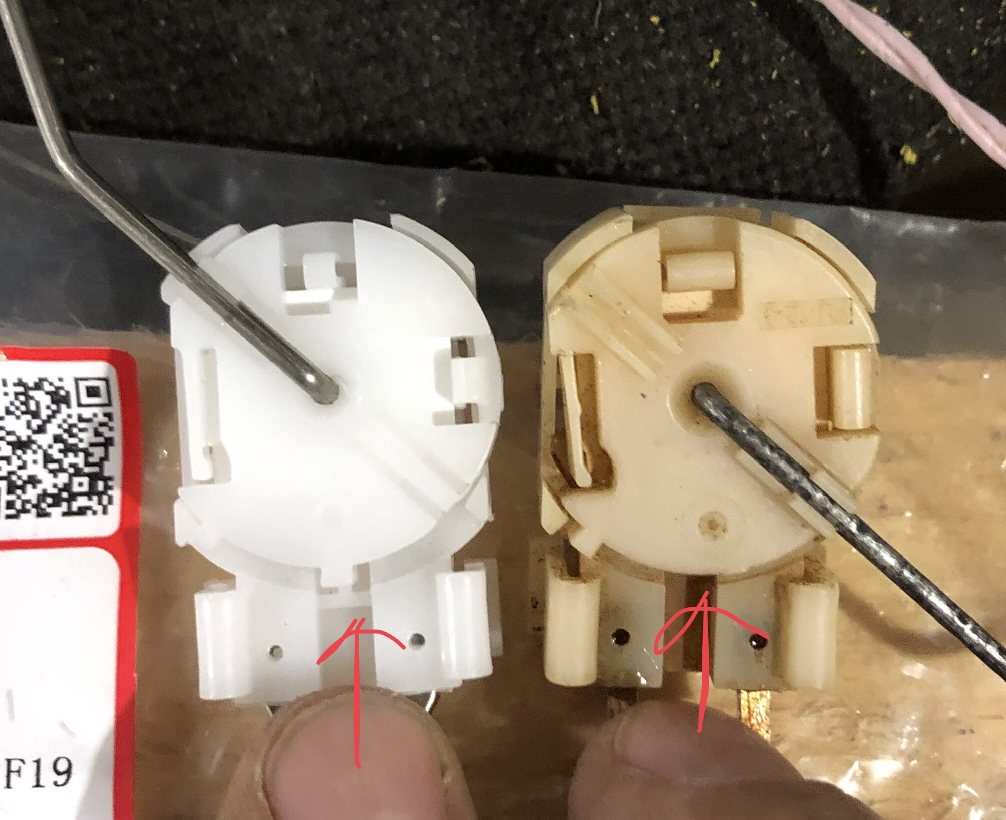Один выступ лишний спилить или переставить поплавок с платой и подвижной частью от своего старого.