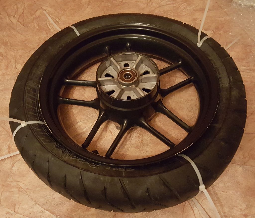 3. Одевание. Задняя покрышка налезла достаточно легко.
