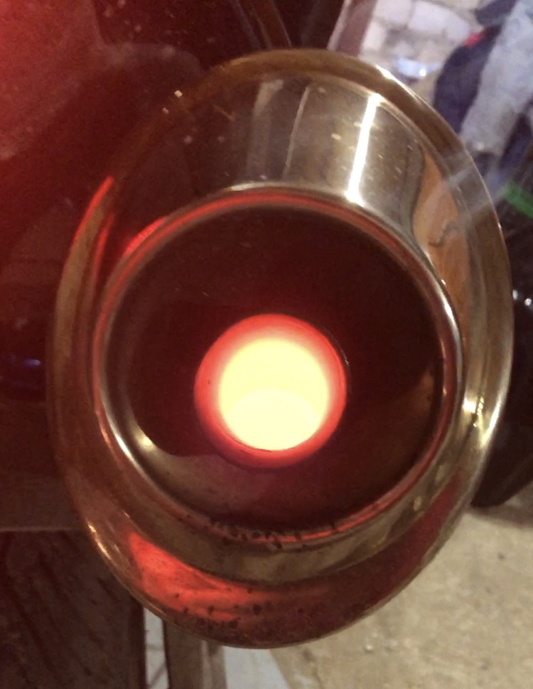 Раскалённая до красна выхлопная труба, с очень большой вероятностью стала такой по причине бедной смеси, ставшей такой в результате установки фильтра нулевого сопротивления. При установке такого фильтра смесь всегда обедняется, т.к. фильтр перестаёт оказывать сопротивление впуску и всасывается больше воздуха, чем с родным фильтром. С такими фильтрами всегда надо регулировать карбюратор после их установки.