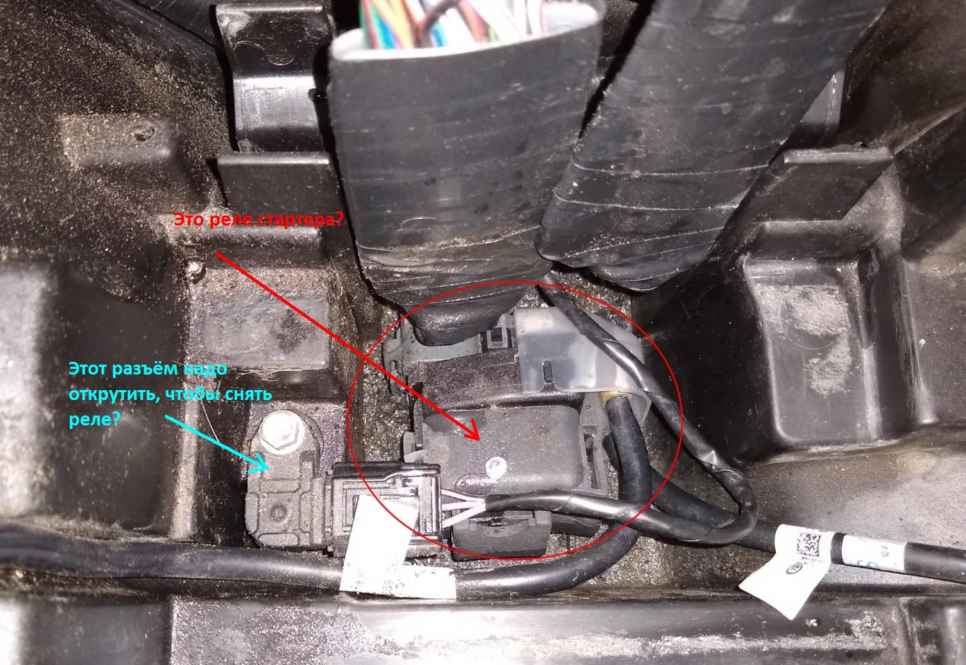 Мастер, посмотри картинку. Красным выделено само реле? Его просто вверх потянуть, и оно вынется, так? Прости за ламерские вопросы. Я просто знать не знаю как выглядит реле стартера. Ещё раз спасибо за ответы.
