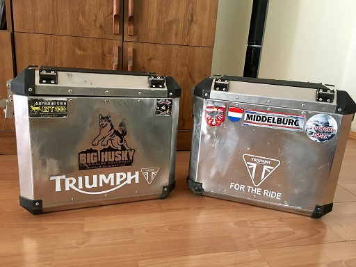 У меня гиви треккер аутбэк,всем нравятся и полностью устраивают ,не протекают совсем как металлические просто треккер,очень удобно открываются для закрузки когда не на Мотике и удобные открывающиеся углы когда ковры на моте,ну и большой плюс для меня - быстросъёмные рамки под них,реально минуты полторы снять или поставить спец ключом ,и максимальная симметрия с ними получается - практически незаметно