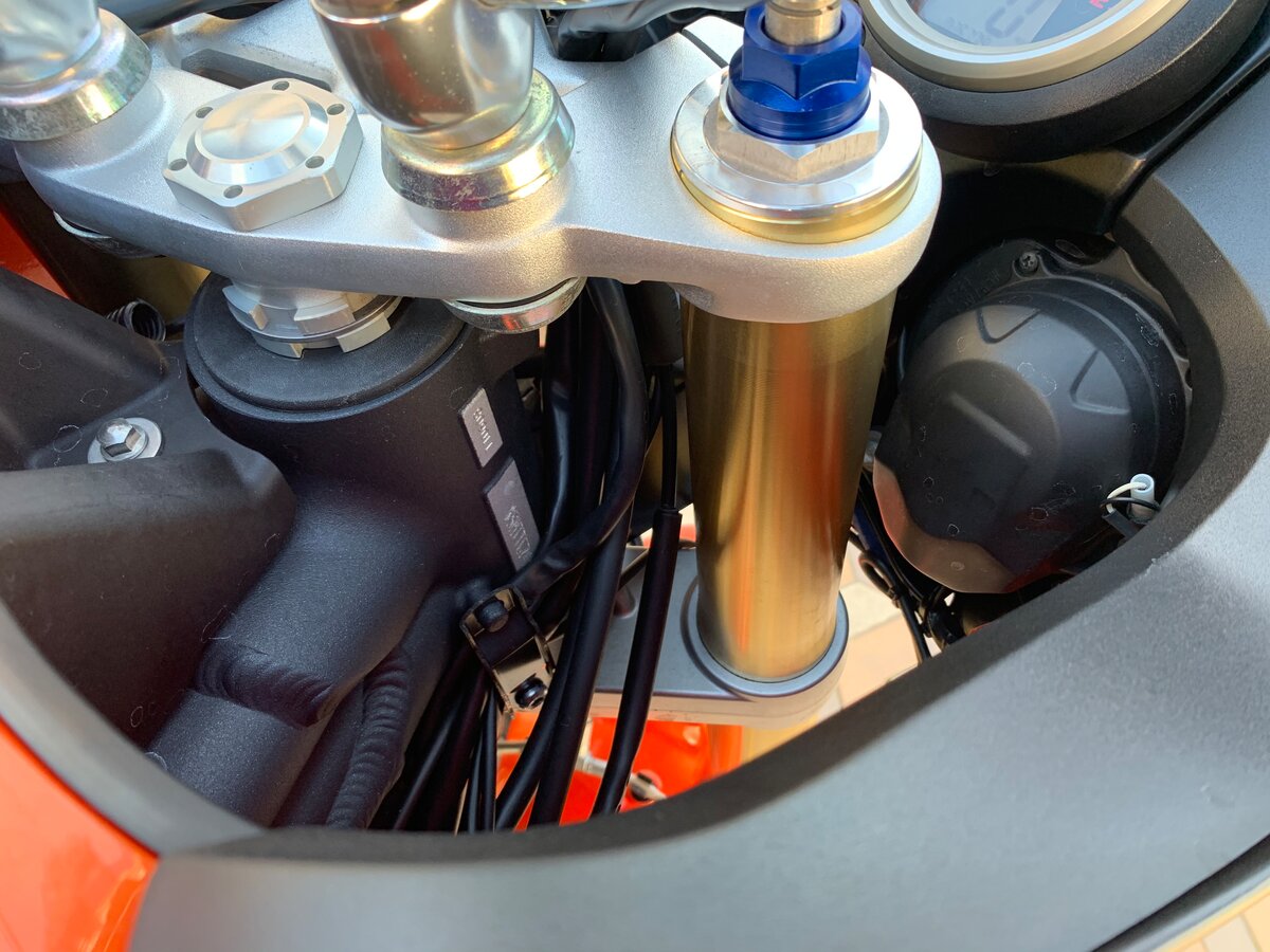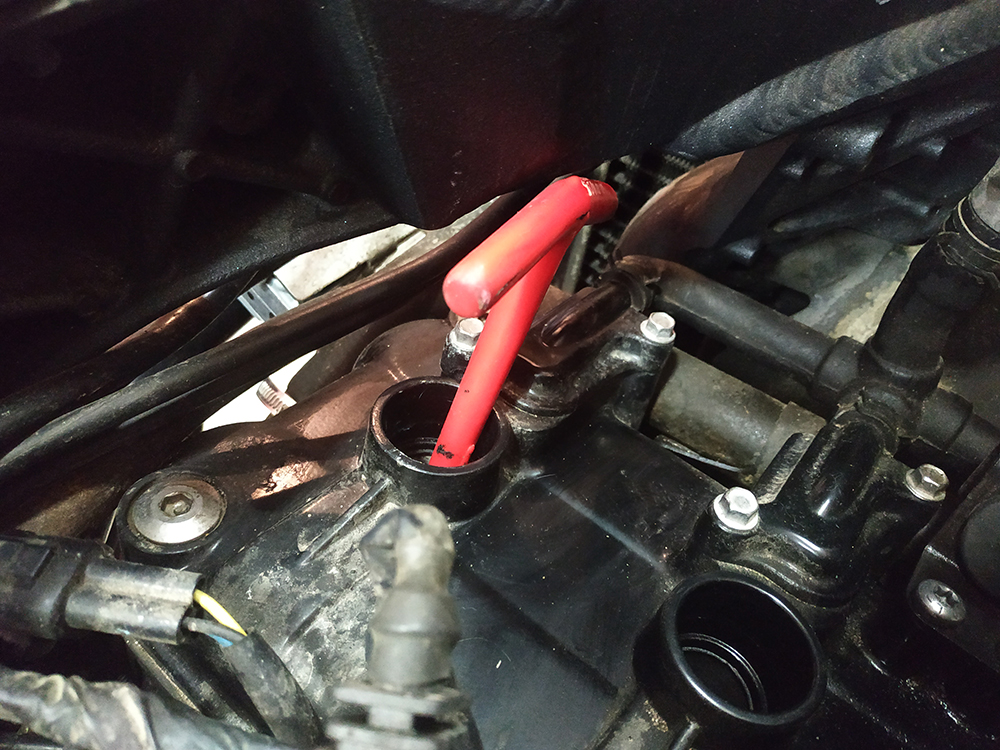Эйрбокс снимается чуть гемморойнее, чем на 800-ке, надо три шланга отсоединить и выдернуть его вверх. Но самое забавное получилось со свечой левого цилиндра, Рядом с колодцем находится рама, которая не даёт воспользоваться стандартным свечным ключом или вставить удлинитель.
