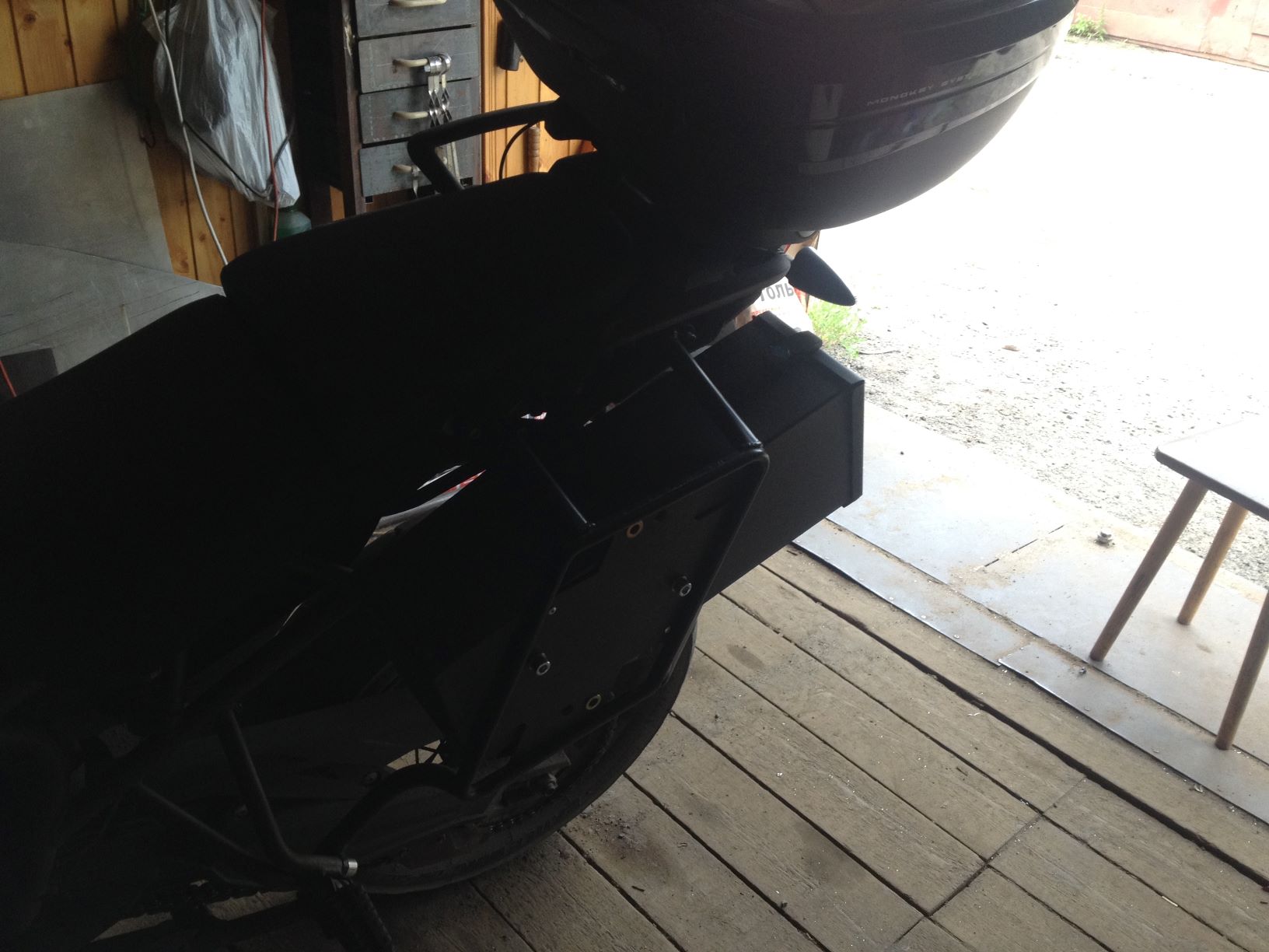 У мотеча есть тубус, который крепится на свои рамки для кофров. Так же видел когда-то в продаже инструментальные алюминиевые ящики под инструмент. Вообще всегда с собой запасные камеры в кофре, монтажки, аптечка для заклейки и компрессор. Тьфу-тьфу, правда, в поле бортировать не приходилось.